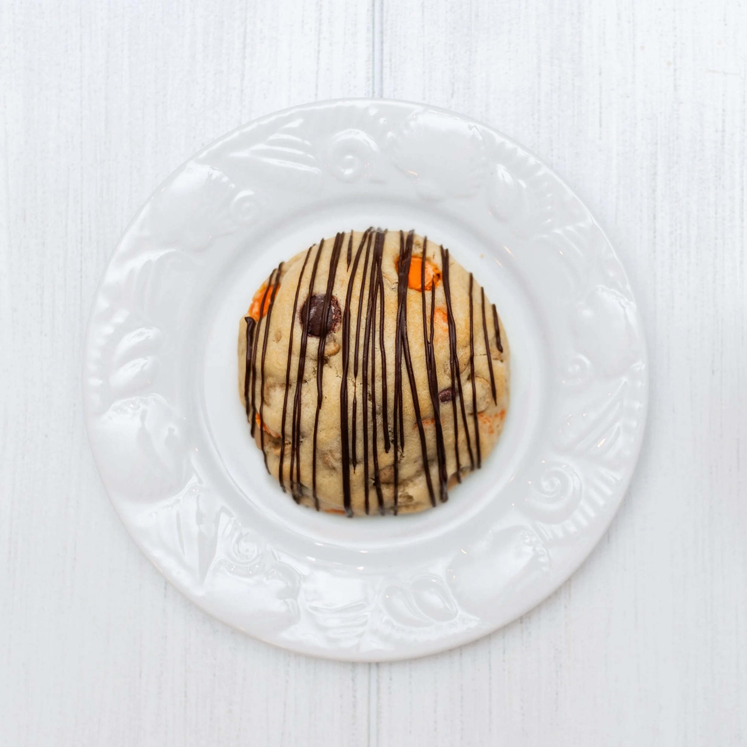 A peanut butter lover’s dream — soft peanut butter cookie stuffed with a rich Reese’s™ cup, studded with peanut butter chips, and topped with colorful Reese’s™ Pieces for the ultimate sweet-salty crunch.